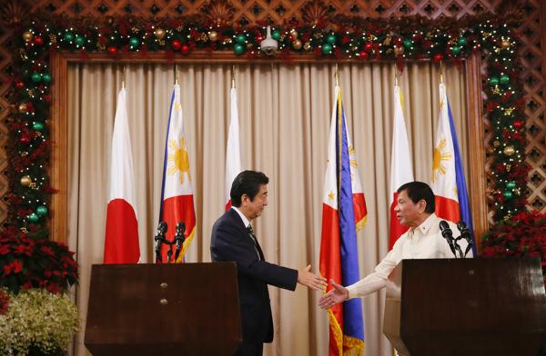 當(dāng)?shù)貢r(shí)間2017年1月12日,菲律賓馬尼拉,日本首相安倍晉三訪問菲律賓,會(huì)見菲總統(tǒng)杜特爾特。 東方IC 圖