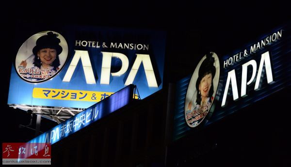 資料圖片:1月25日,日本東京赤坂拍攝的APA酒店廣告牌。(新華社記者 馬平攝)