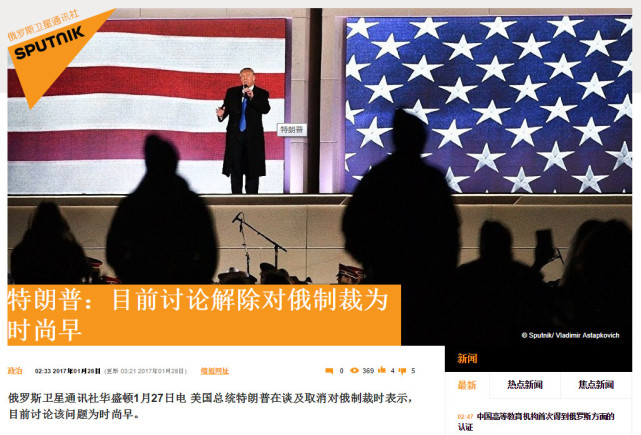 【環(huán)球網(wǎng)綜合報(bào)道】俄羅斯衛(wèi)星網(wǎng)1月28日?qǐng)?bào)道稱(chēng),美國(guó)總統(tǒng)特朗普近日在談及取消對(duì)俄制裁時(shí)表示,目前討論該問(wèn)題為時(shí)尚早。