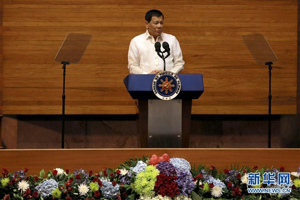 資料圖:7月24日,在菲律賓馬尼拉,菲律賓總統(tǒng)杜特爾特在國會發(fā)表年度國情咨文。新華網發(fā)(魯埃勒·烏馬利攝)