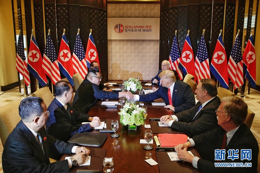 長期敵對(duì)的朝美兩國當(dāng)天舉行首次領(lǐng)導(dǎo)人會(huì)晤,就朝鮮半島無核化及和平機(jī)制構(gòu)建等事務(wù)展開磋商。