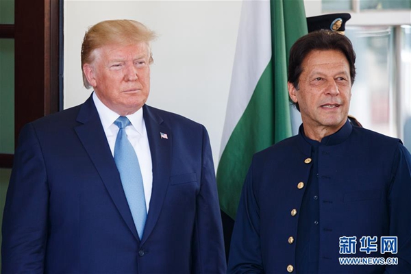 7月22日,在美國華盛頓白宮,美國總統(tǒng)特朗普(左)歡迎巴基斯坦總理伊姆蘭·汗。新華社發(fā)(沈霆 攝)