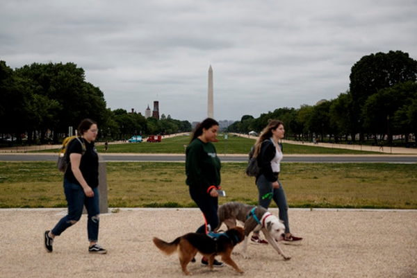 5月18日,人們?cè)诿绹?guó)首都華盛頓國(guó)家廣場(chǎng)散步、遛狗。美國(guó)約翰斯·霍普金斯大學(xué)18日發(fā)布的新冠疫情最新統(tǒng)計(jì)數(shù)據(jù)顯示,美國(guó)累計(jì)新冠確診病例超過(guò)150萬(wàn)例。新華社發(fā)(沈霆攝)