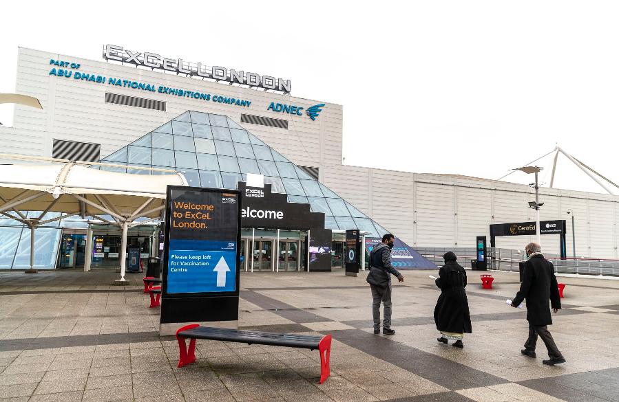 1月12日,人們走向位于英國倫敦ExCel會展中心的疫苗接種中心。(新華社記者韓巖攝)