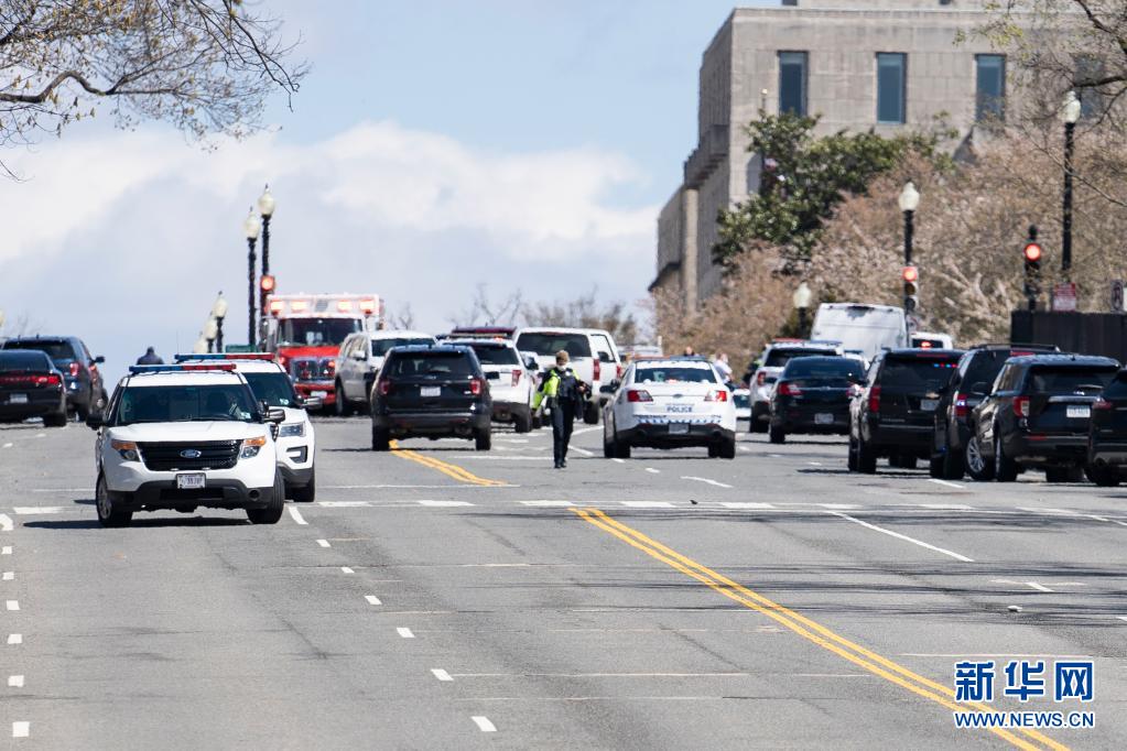 4月2日,在美國華盛頓,警車在襲警事件現(xiàn)場附近待命。