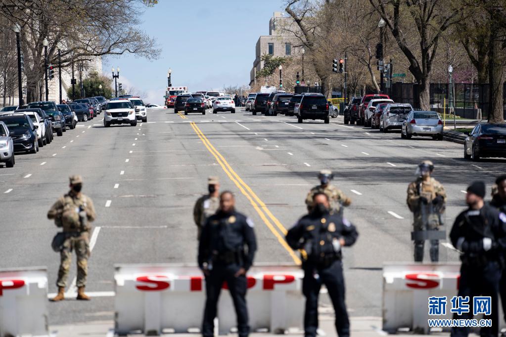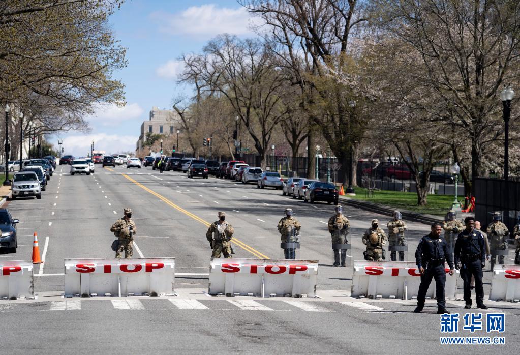 4月2日,美國國民警衛(wèi)隊隊員和警察在華盛頓國會附近警戒。