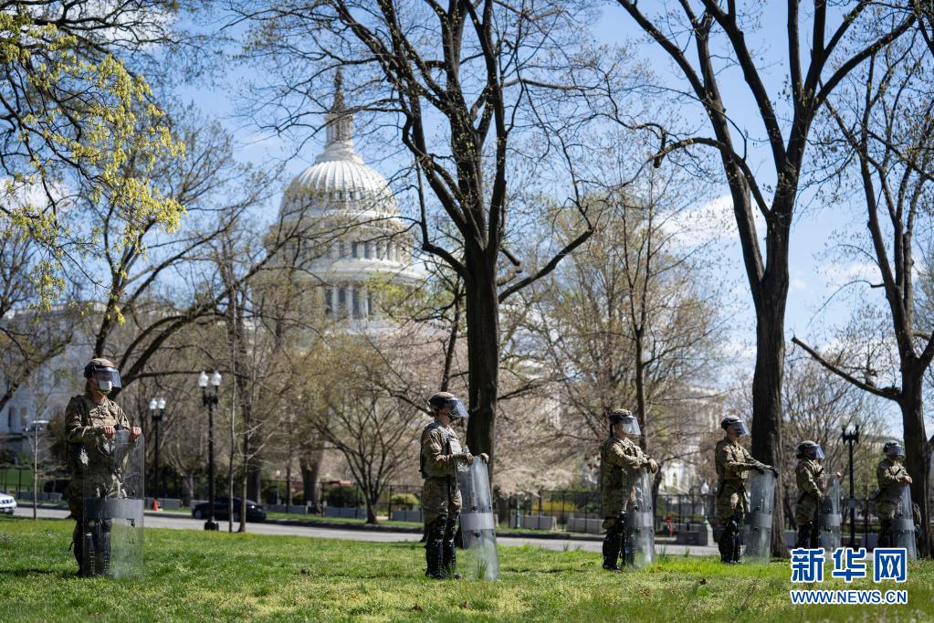 4月2日,美國國民警衛(wèi)隊隊員在華盛頓國會附近警戒。