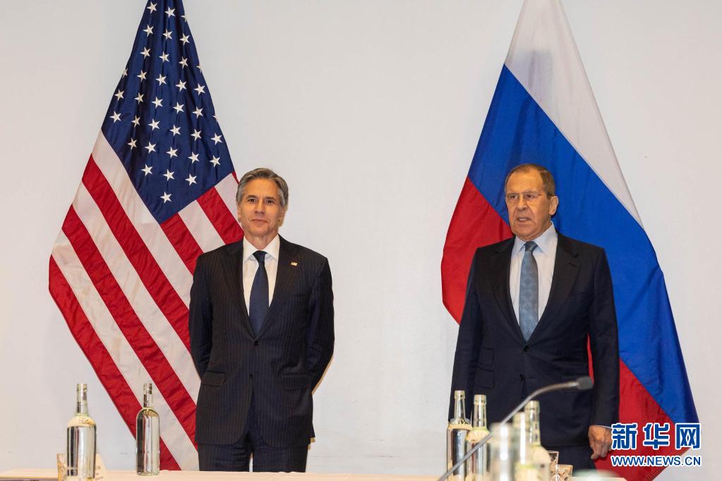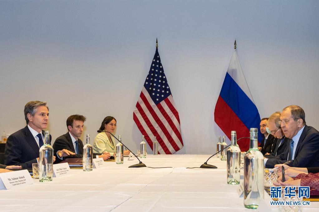 5月19日,美國國務(wù)卿布林肯(左)和俄羅斯外長拉夫羅夫在冰島雷克雅未克舉行會(huì)晤。新華社發(fā)(冰島外交部供圖)