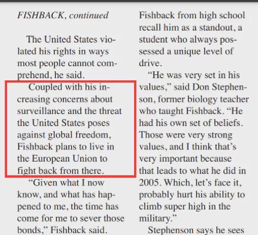 不僅如此,費舍拜克還表示他將前往歐洲的瑞典,申請成為一名歐盟的公民,然后在歐洲對抗美國對全球自由的“監(jiān)控”和“威脅”。
