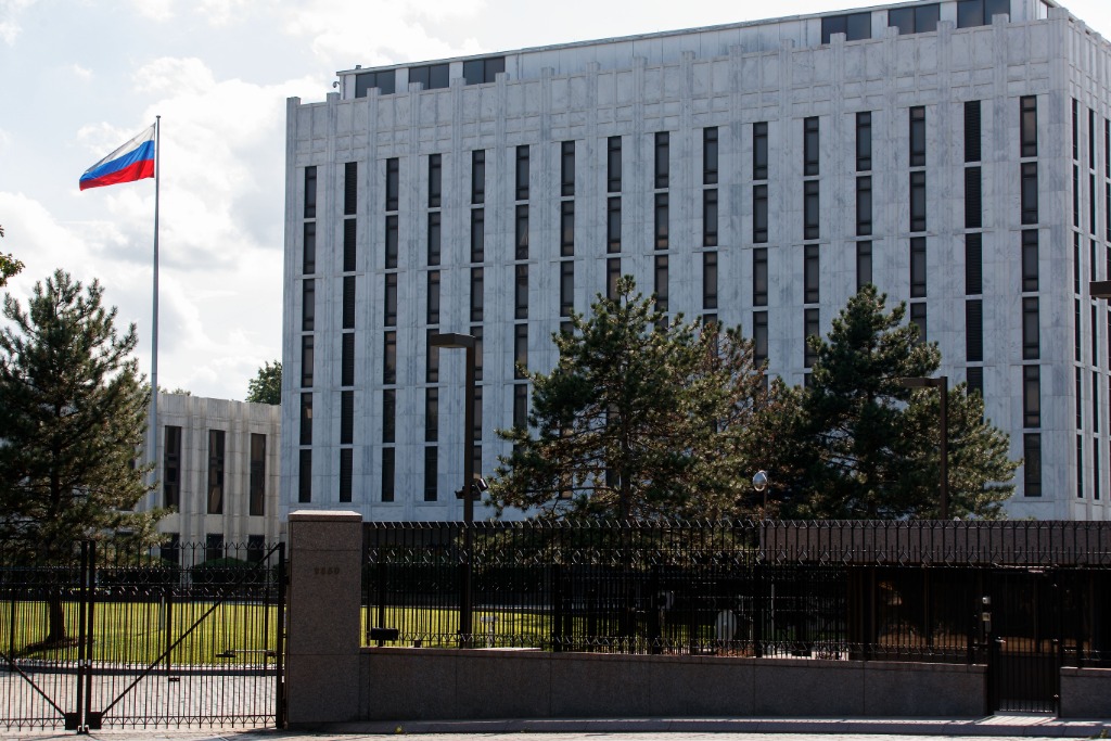 2018年8月8日在美國(guó)首都華盛頓拍攝的俄羅斯駐美國(guó)大使館外景。(新華社發(fā),沈霆攝)