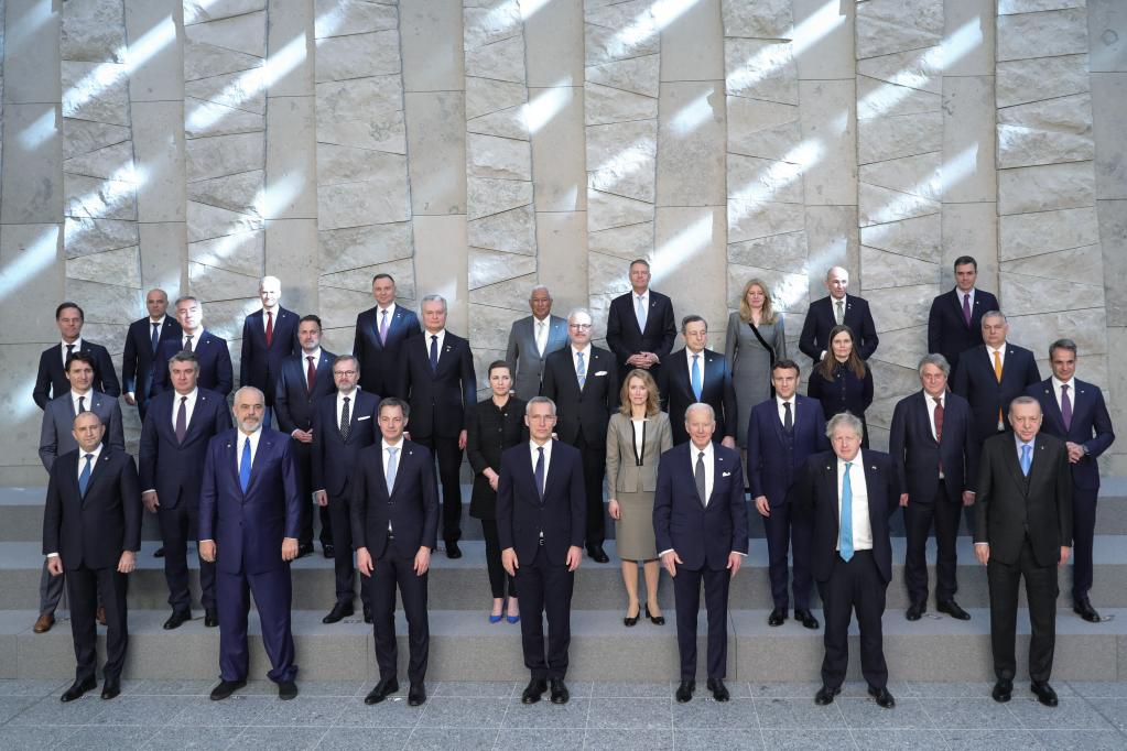 3月24日,在比利時(shí)布魯塞爾的北約總部,領(lǐng)導(dǎo)人在會(huì)議期間合影。新華社記者鄭煥松攝