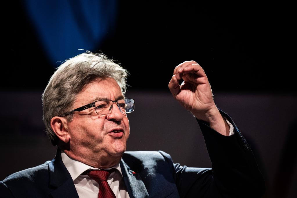 6月19日,法國極左翼政黨“不屈法國”領導人梅朗雄在巴黎舉行的選后集會上講話。(新華社發(fā),何塞·博薩斯攝)
