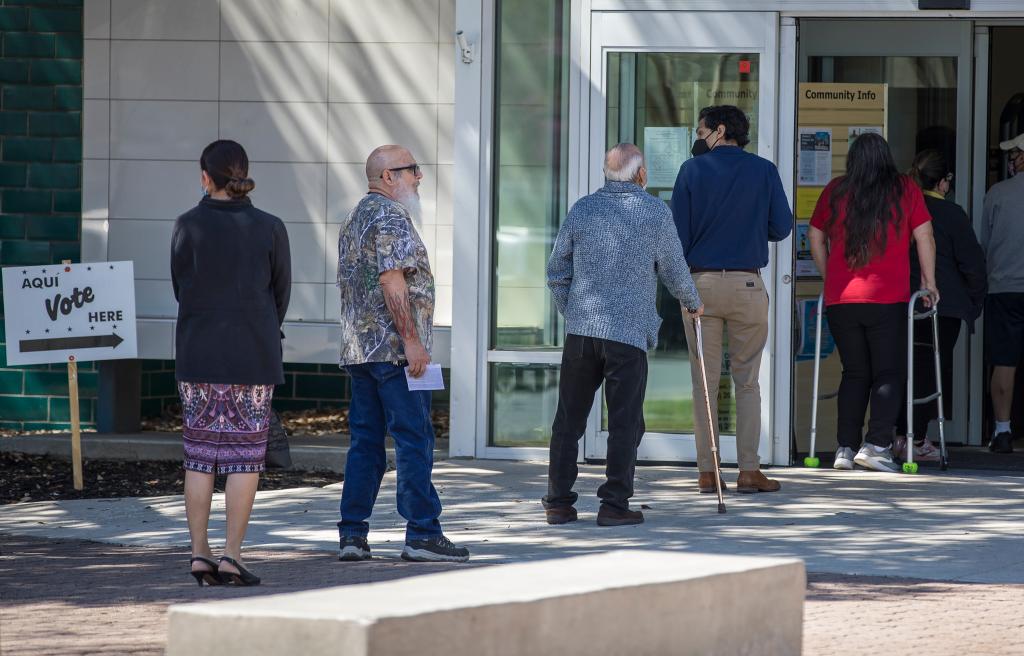 美國2022年中期選舉3月1日以人口和面積第二大州得克薩斯州的預(yù)選拉開帷幕。圖為人們當(dāng)天在得克薩斯州圣安東尼奧的一處投票站排隊(duì)。(新華社發(fā),尼克·瓦格納 攝)