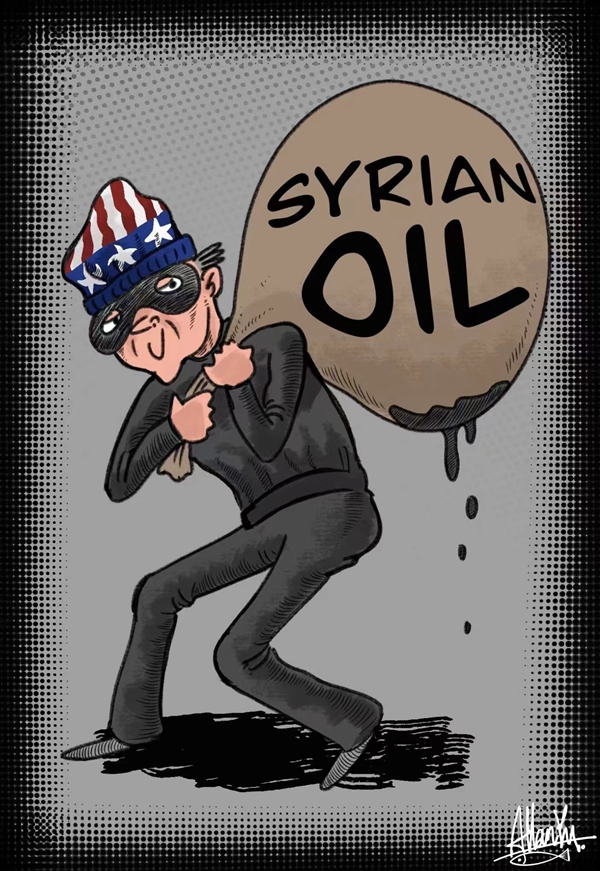 美軍在敘利亞的偷油行徑并非偶爾為之,而是持續(xù)經(jīng)年,是大規(guī)模、成系統(tǒng)的。據(jù)敘石油和礦產(chǎn)資源部統(tǒng)計,自2011年至今年年中,美軍在敘非法駐扎以及受其支持的武裝勢力進行的盜采、非法貿(mào)易行為,已對敘石油、天然氣等行業(yè)造成1071億美元的直接和間接損失。美國還霸占敘利亞主要產(chǎn)糧區(qū),多次走私或燒毀敘利亞小麥。