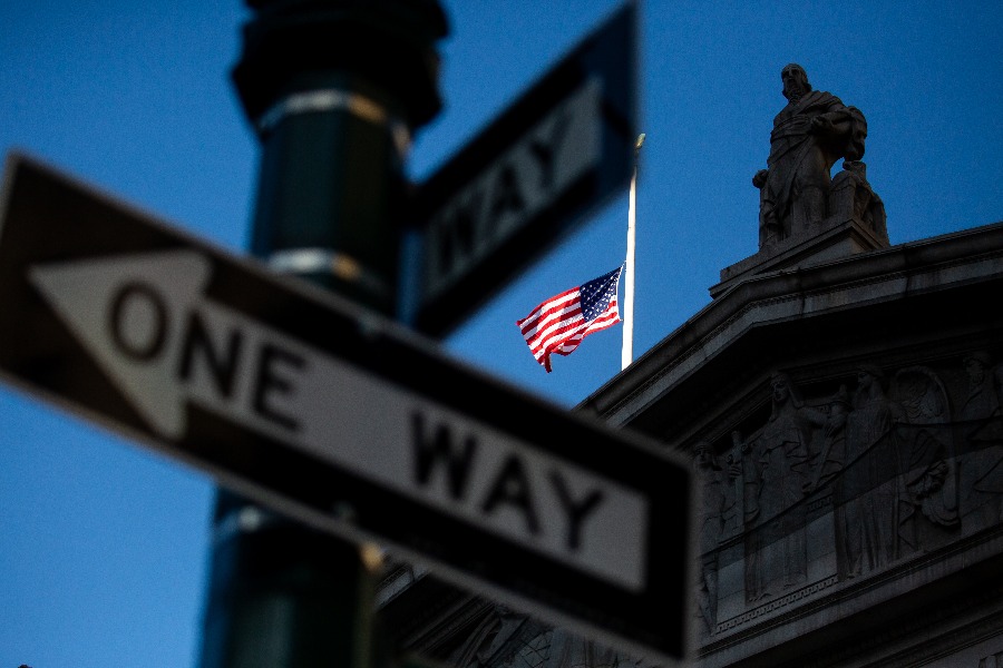 2022年5月12日,美國紐約一座法院降半旗悼念新冠逝者。新華社發(fā)(郭克攝)