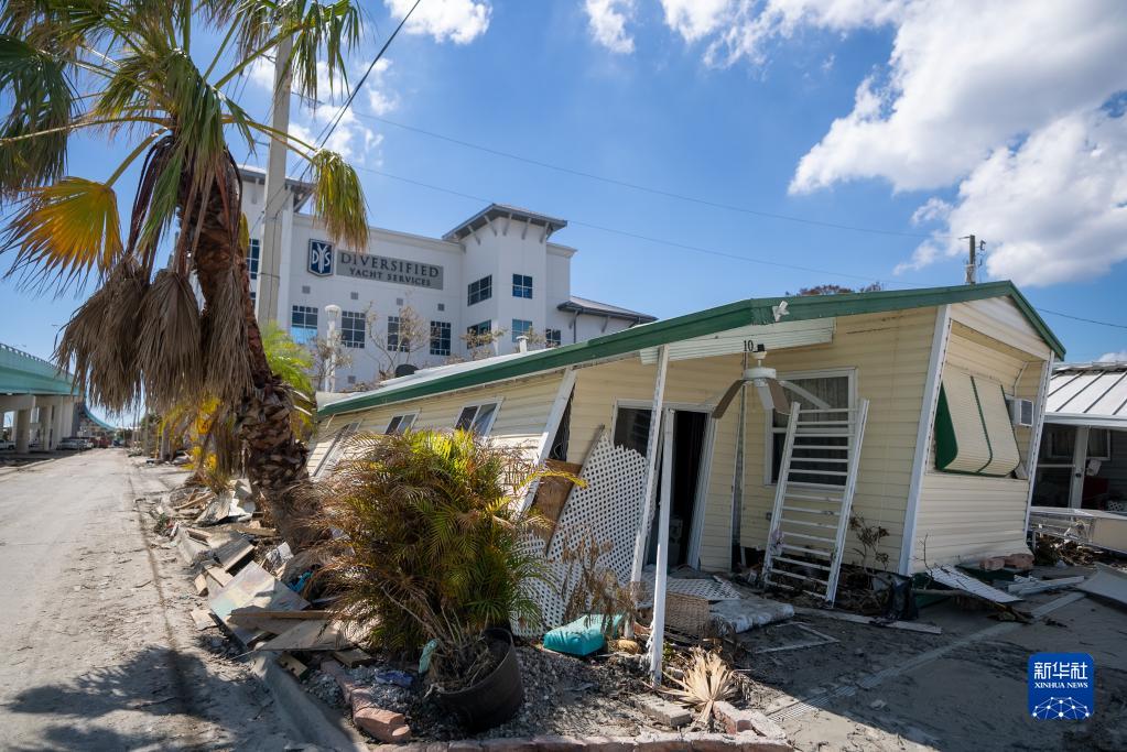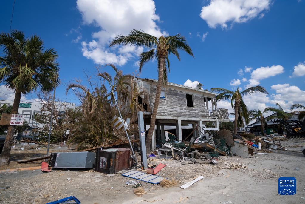 這是10月4日在美國佛羅里達州邁爾斯堡拍攝的遭颶風(fēng)“伊恩”破壞的建筑。新華社發(fā)(羅蘭多·洛佩斯攝)