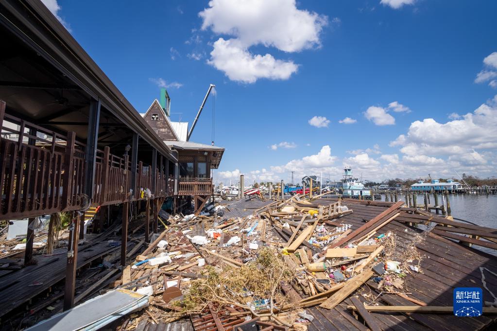 這是10月4日在美國佛羅里達州邁爾斯堡拍攝的遭颶風(fēng)“伊恩”破壞的碼頭。 新華社發(fā)(羅蘭多·洛佩斯攝)