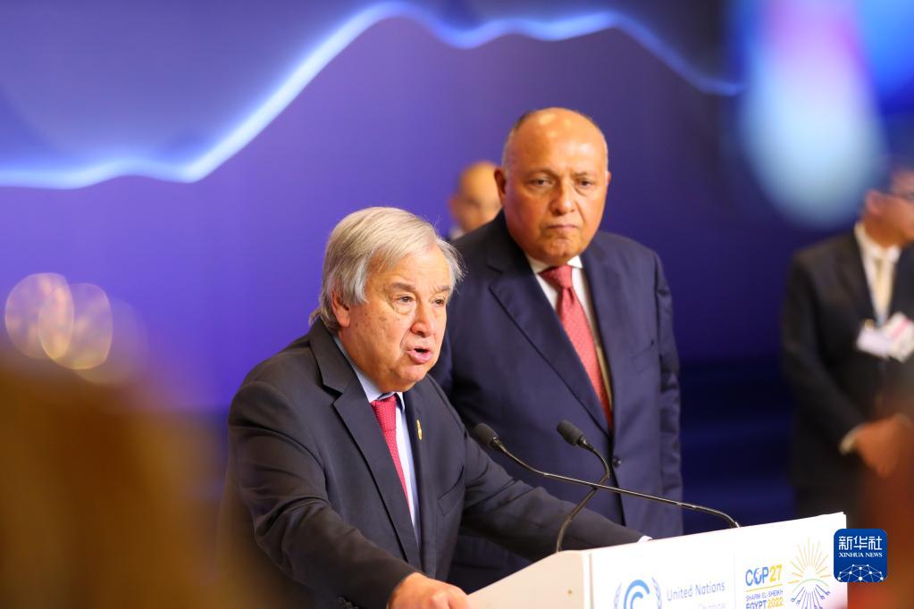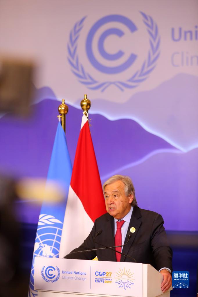 11月17日,聯(lián)合國(guó)秘書長(zhǎng)古特雷斯在埃及沙姆沙伊赫舉行的記者會(huì)上發(fā)言。新華社記者 隋先凱 攝