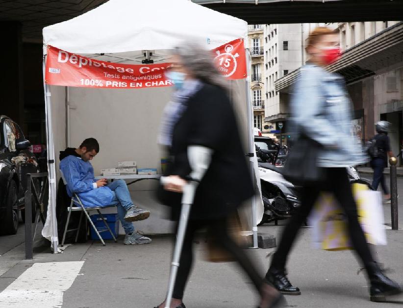 這是2021年6月30日在法國巴黎老佛爺百貨商場外拍攝的快速新冠病毒檢測點(diǎn)。(新華社記者高靜攝)