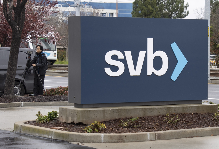 這是3月10日在美國加利福尼亞州圣克拉拉市硅谷銀行總部外拍攝的銀行標識。新華社發(fā)(李建國攝)