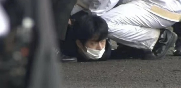 △犯罪嫌疑人在現(xiàn)場被日本警方制服(圖片來源:朝日電視臺(tái))