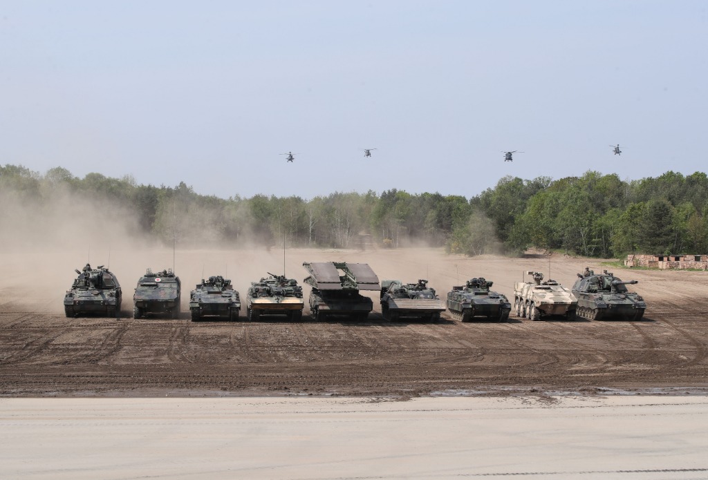 2019年5月20日,在德國蒙斯特,北約快速反應(yīng)部隊(duì)裝甲車及直升機(jī)參與演示。新華社記者單宇琦攝