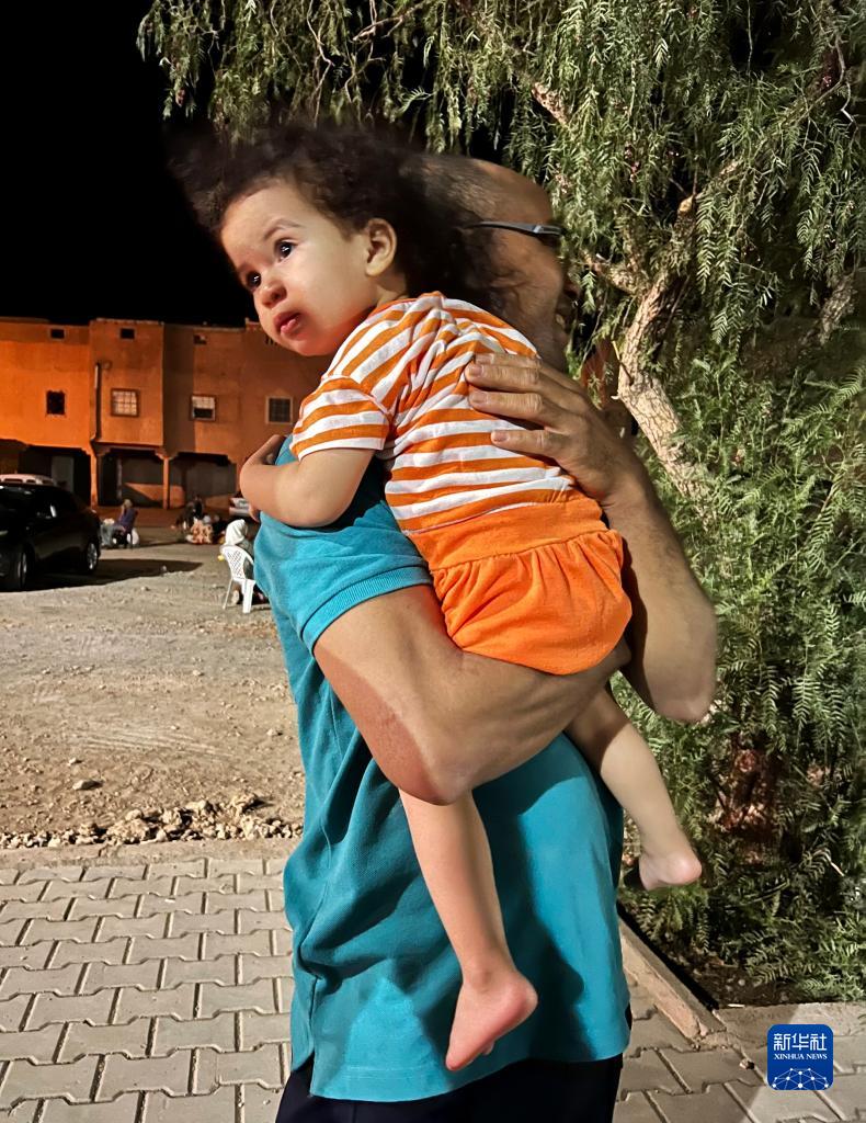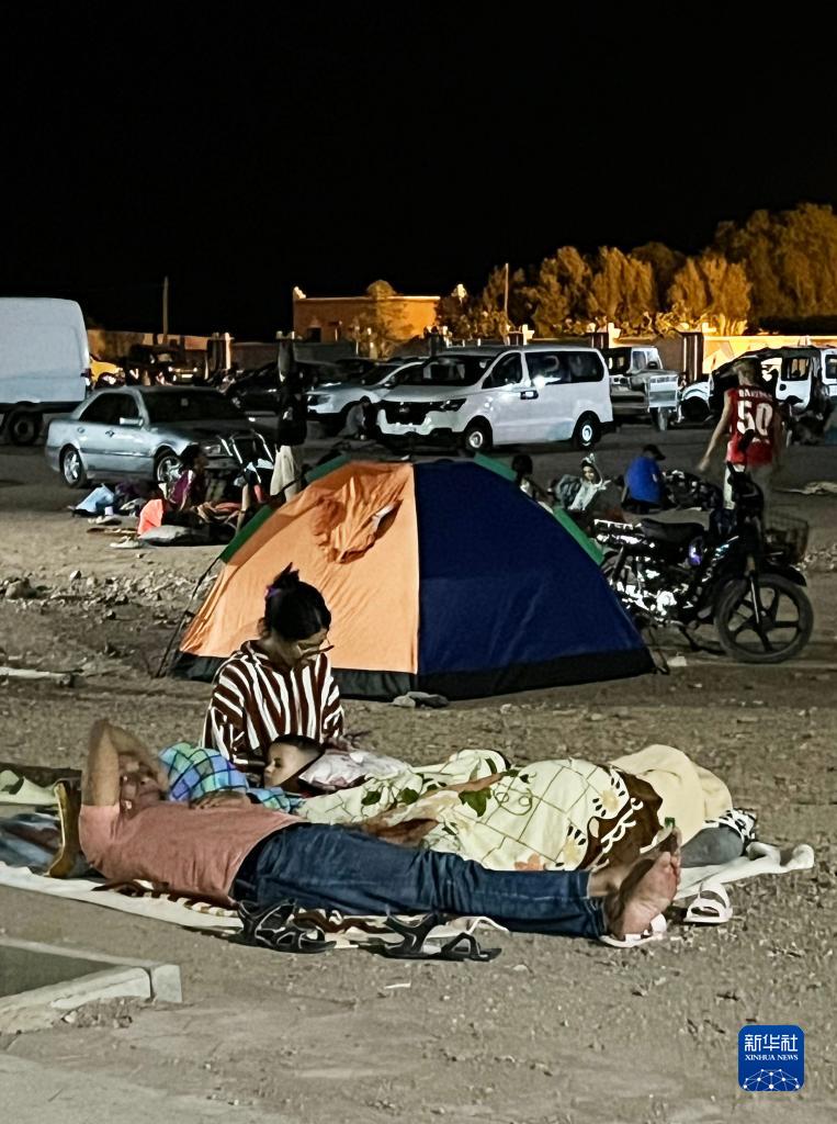 9月9日凌晨,在距離震中200多公里的摩洛哥瓦爾扎扎特市,居民來到戶外避險(手機照片)。 新華社記者 王東震 攝