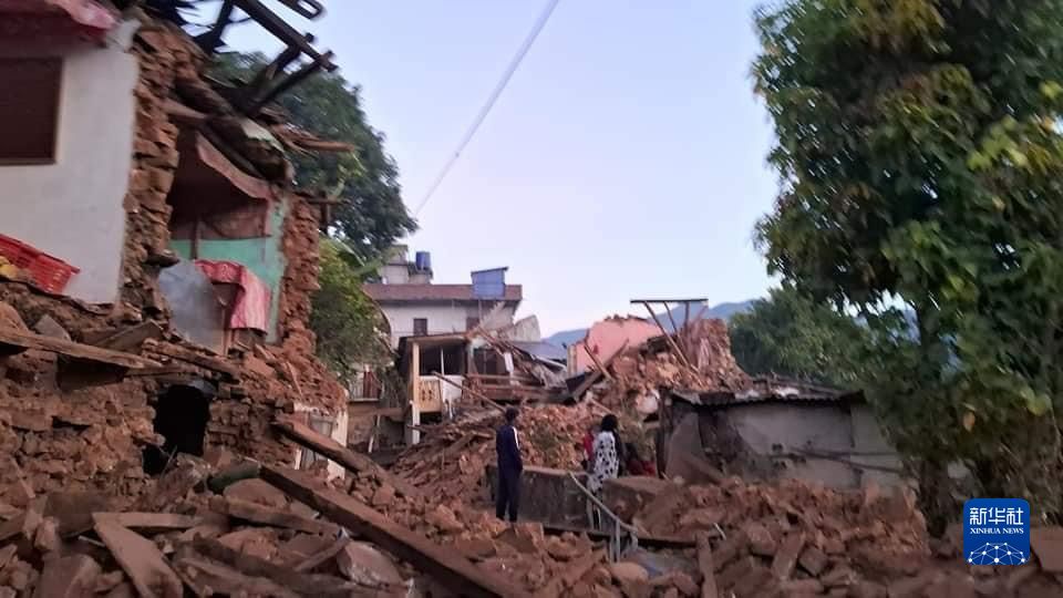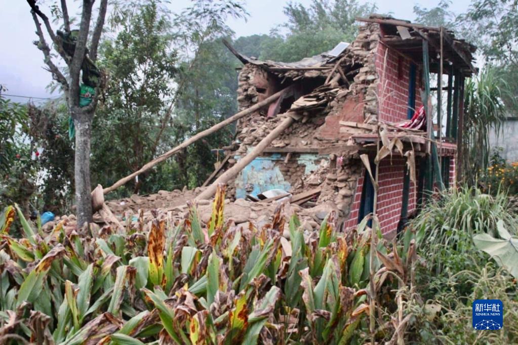這是11月4日在尼泊爾西部扎澤爾果德拍攝的被地震損毀的房屋。新華社發(fā)(尼泊爾總理府供圖)