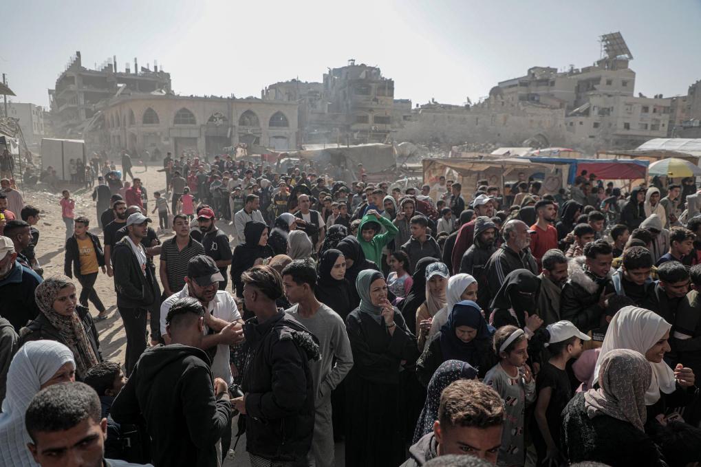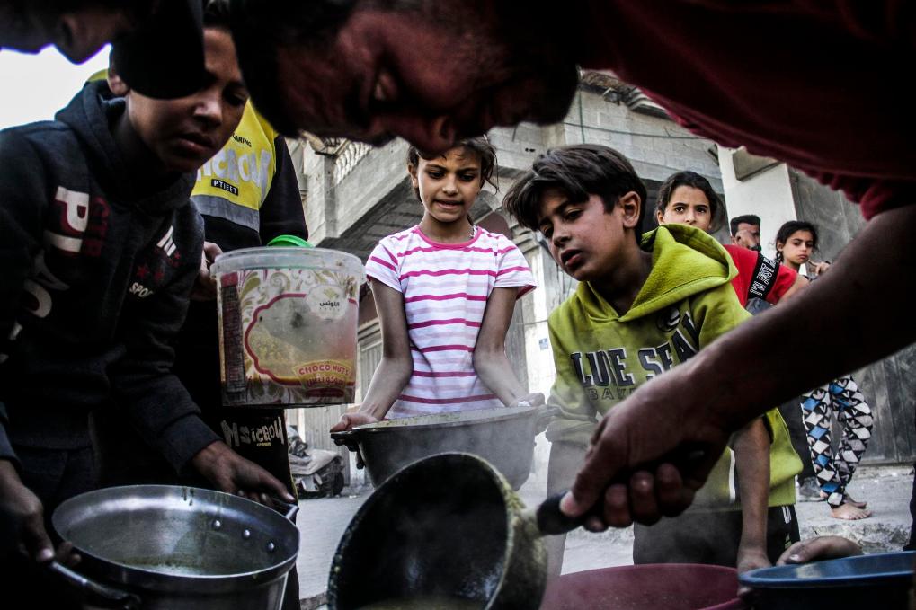10月23日,人們在加沙地帶北部的加沙城領取救濟食品。新華社發(fā)(馬哈茂德·扎基攝)