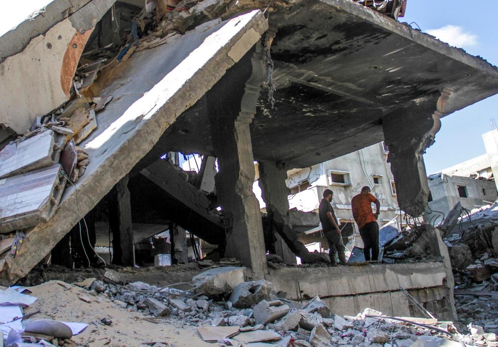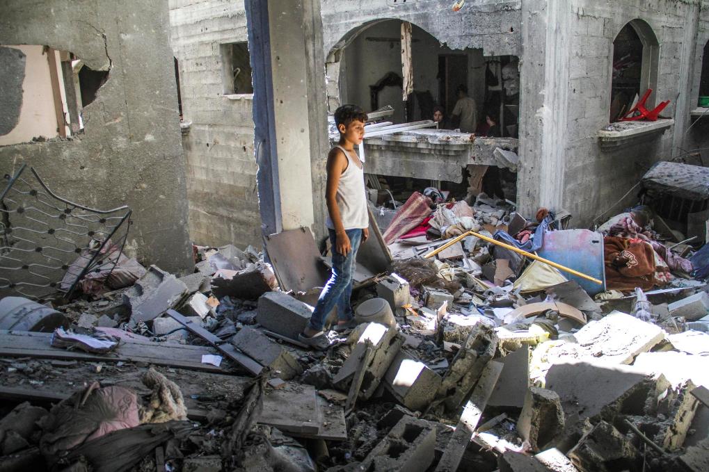 9月6日,巴勒斯坦人在加沙地帶北部杰巴利耶地區(qū)查看房屋損毀情況。新華社發(fā)(馬哈茂德·扎基攝)