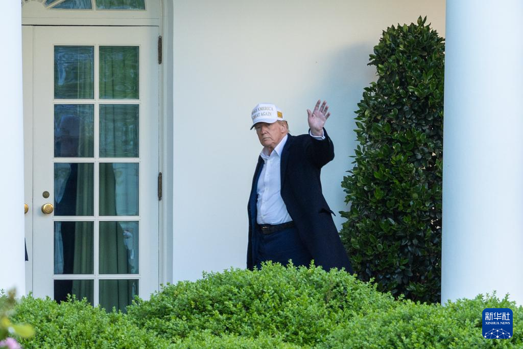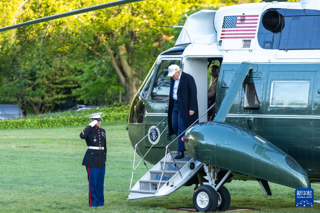 4月27日,在美國(guó)首都華盛頓,美國(guó)總統(tǒng)特朗普走下直升機(jī)。新華社記者 胡友松 攝