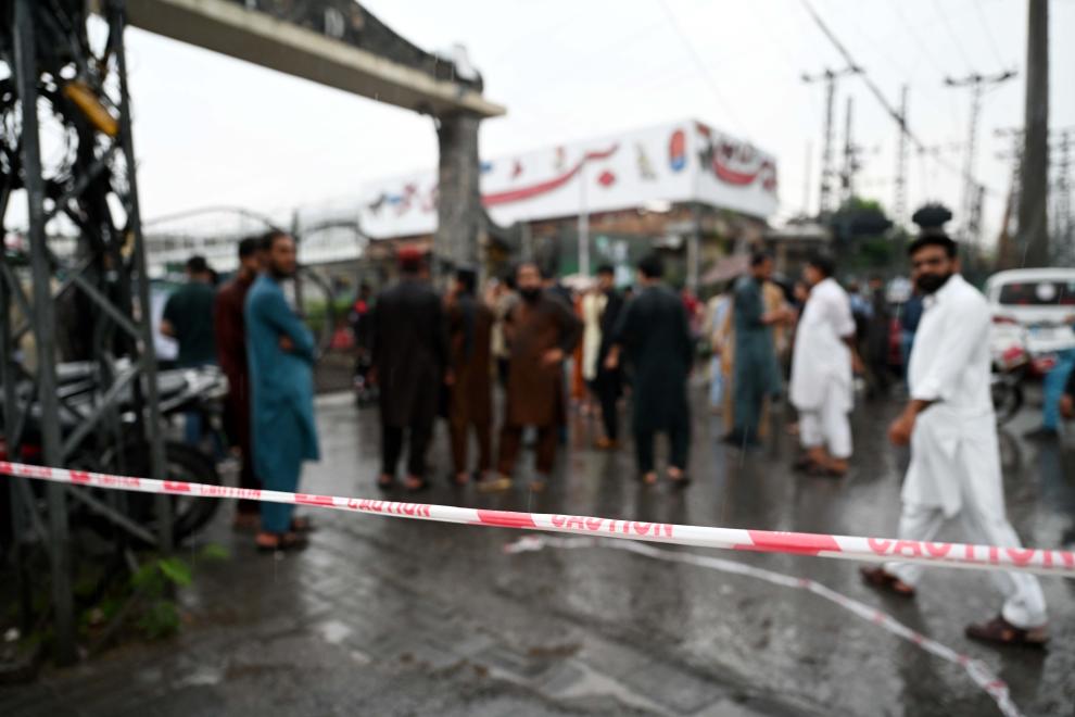 5月8日,人們聚集在巴基斯坦旁遮普省拉瓦爾品第的印度無(wú)人機(jī)襲擊現(xiàn)場(chǎng)附近。新華社發(fā)(艾哈邁德·卡邁勒攝)