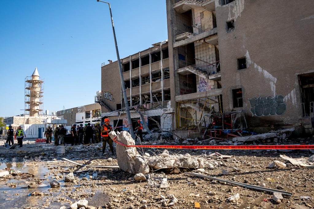 6月20日,安全和救援人員在以色列北部海法的導(dǎo)彈襲擊現(xiàn)場(chǎng)工作。新華社/基尼圖片社
