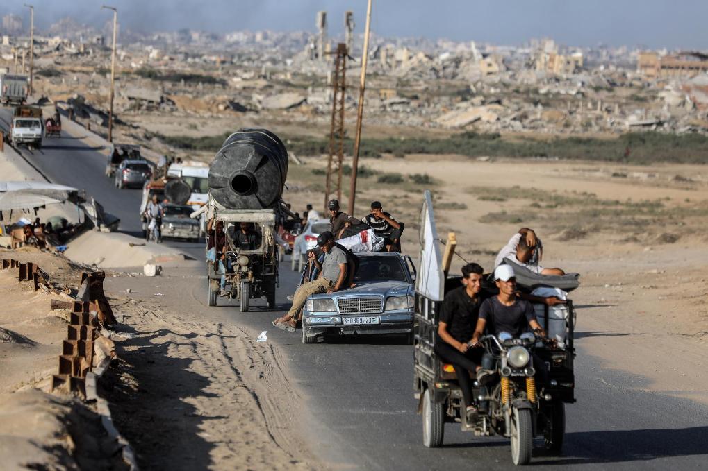 8月31日,在加沙地帶中部地區(qū),從加沙地帶北部地區(qū)撤離的巴勒斯坦人向南部遷移。新華社發(fā)(里澤克·阿卜杜勒賈瓦德攝)