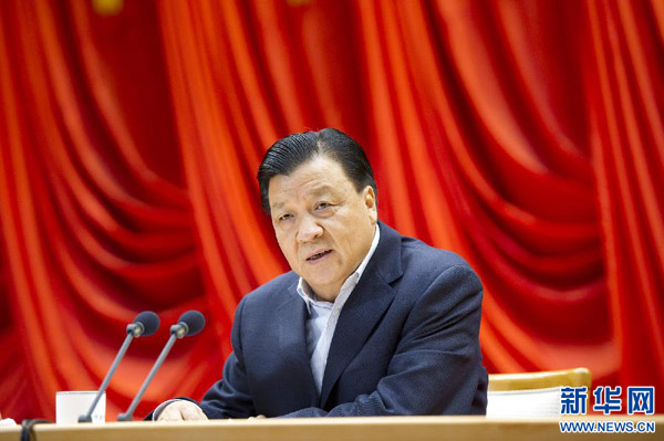 1月6日,中共中央政治局常委劉云山在新進(jìn)中央委員會的委員、候補(bǔ)委員學(xué)習(xí)貫徹黨的十八大精神研討班上作輔導(dǎo)報告。 新華社記者 黃敬文 攝