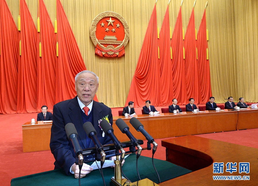 1月18日,中共中央、國務(wù)院在北京人民大會(huì)堂隆重舉行國家科學(xué)技術(shù)獎(jiǎng)勵(lì)大會(huì)。胡錦濤、習(xí)近平、溫家寶、李克強(qiáng)、劉云山出席大會(huì)并為獲獎(jiǎng)代表頒獎(jiǎng)。這是2012年度國家最高科學(xué)技術(shù)獎(jiǎng)獲得者王小謨?cè)菏吭跁?huì)上發(fā)言。新華社記者 劉建生攝
