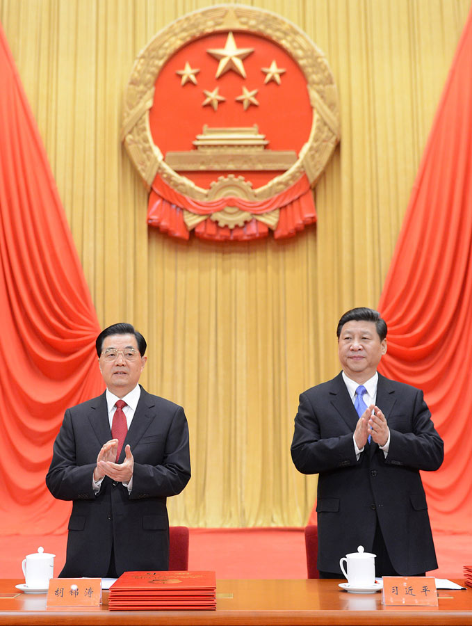 (胡錦濤、習(xí)近平等出席大會(huì)并為獲獎(jiǎng)代表頒獎(jiǎng)。)