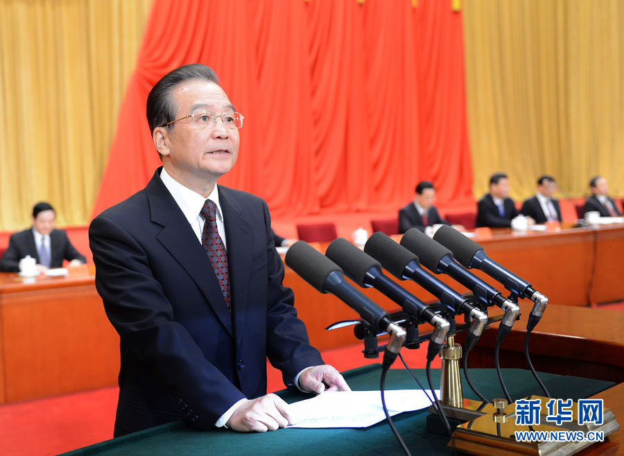 國務(wù)院總理溫家寶代表黨中央、國務(wù)院在大會(huì)上講話。