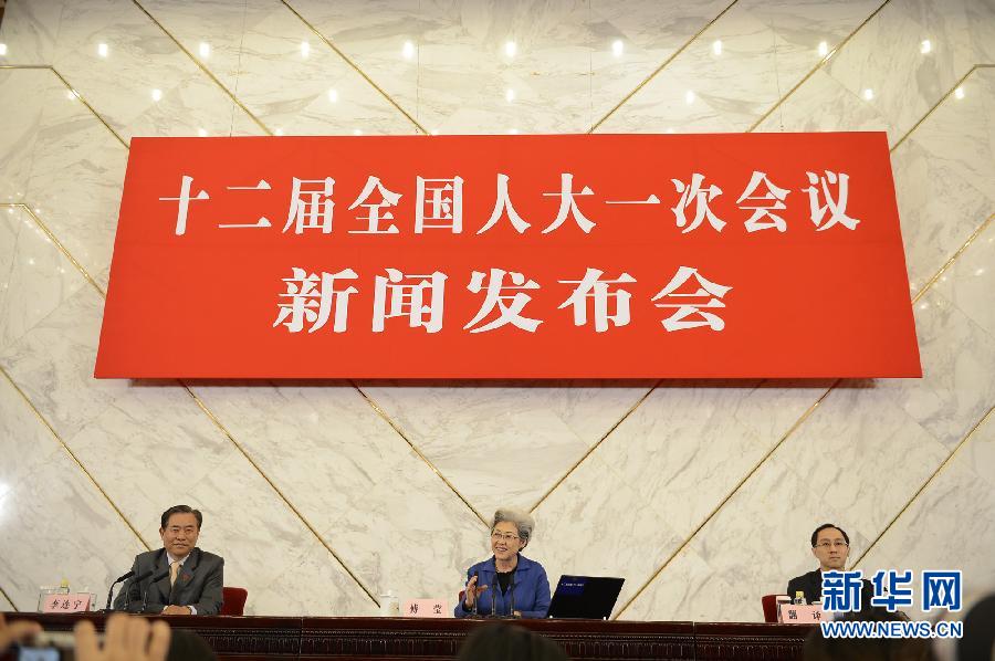 [傅瑩]今天上午也就是剛才,大會(huì)舉行了預(yù)備會(huì)議,通過了會(huì)議議程,選舉了由178人組成的大會(huì)主席團(tuán)。選舉李建國為大會(huì)秘書長。預(yù)備會(huì)議之后舉行了大會(huì)主席團(tuán)第一次會(huì)議,推選了主席團(tuán)常務(wù)主席,通過了會(huì)議日程和執(zhí)行主席分組名單,決定王萬賓、趙勝軒、沈躍躍、焦煥成、傅瑩為大會(huì)副秘書長。會(huì)議決定提出議案的截止時(shí)間為3月11日中午12點(diǎn),會(huì)議決定了表決議案的辦法。
