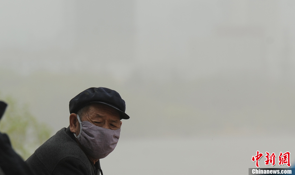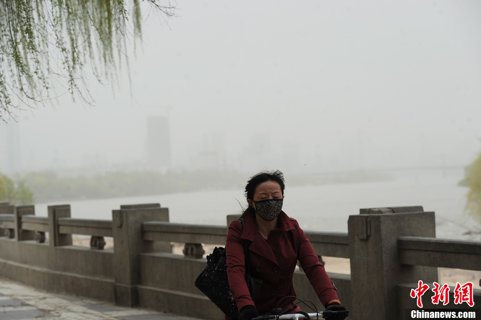 3月25日,蘭州再次遭遇大風(fēng)揚(yáng)沙天氣侵襲,市民艱難出行。中新社發(fā) 楊艷敏 攝