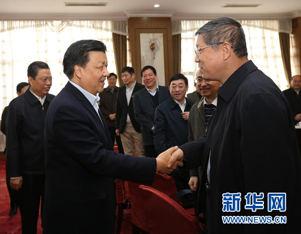 3月28日,中共中央政治局常委、中央黨校校長劉云山在中央黨校主持召開弘揚(yáng)良好學(xué)風(fēng)座談會。這是座談會前,劉云山與出席座談會代表見面交談。新華社記者 劉衛(wèi)兵 攝