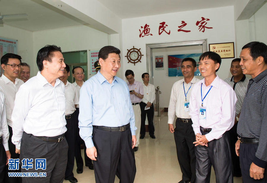 習(xí)近平親切看望了由潭門(mén)漁民組成的海上民兵連,看連史展覽,聽(tīng)事跡介紹,勉勵(lì)他們努力學(xué)習(xí)現(xiàn)代裝備知識(shí),提高作業(yè)能力,在帶領(lǐng)漁民耕海致富的同時(shí),積極做好收集遠(yuǎn)洋信息、支援島礁建設(shè)等工作。