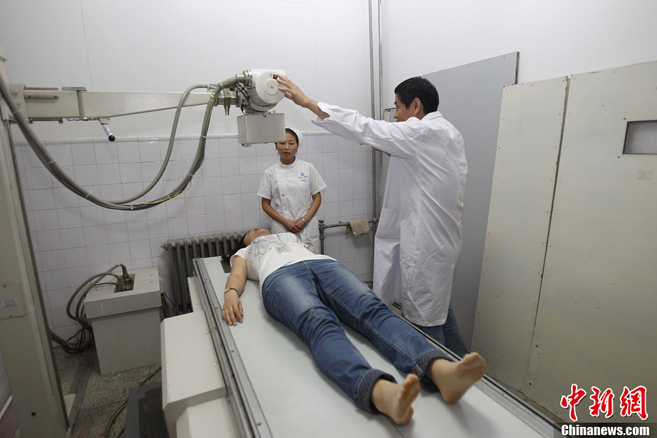 10月11日,河南亞太骨病醫(yī)院,一名男醫(yī)生正在為女患者做檢查,女護士在現(xiàn)場陪伴。據(jù)河南省衛(wèi)生部門出臺的最新規(guī)定,該規(guī)定明確指出,醫(yī)療衛(wèi)生機構(gòu)除必須在門診診室、治療室、多人病房設(shè)置隔簾或屏風(fēng)等私密性保護設(shè)施外,男性醫(yī)務(wù)人員為女性患者進行診查時,還必須有護士或家屬陪伴,河南亞太骨病醫(yī)院院長王瑞認為,該規(guī)定對男醫(yī)生和患者都起到了雙重保護的作用,既可以保護女患者不被不良男醫(yī)生騷擾,也保護了男醫(yī)生不被女患者誣陷,同時也可保障遇有緊急情況時,有第三方幫助排除險情。中新社發(fā) 王中舉 攝
