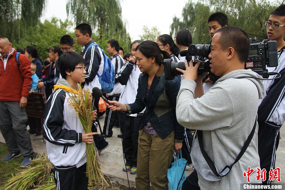 北京清華附中組織學(xué)生收割稻穗 體驗(yàn)勞作辛苦(圖)