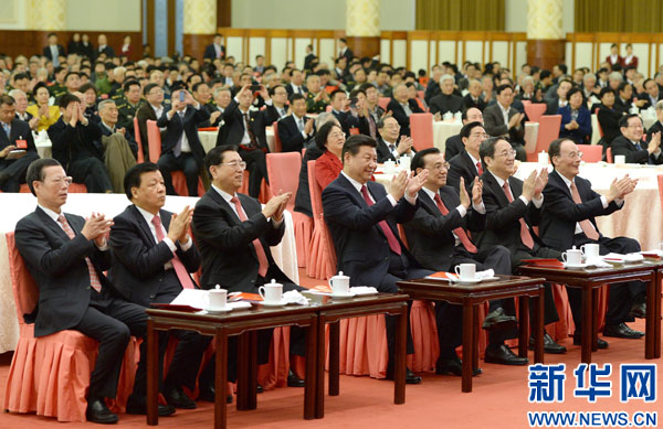 1月29日,中共中央、國務院在北京人民大會堂舉行2014年春節(jié)團拜會。黨和國家領導人習近平、李克強、張德江、俞正聲、劉云山、王岐山、張高麗等同首都各界人士歡聚一堂,共迎新春。 新華社記者 馬占成 攝