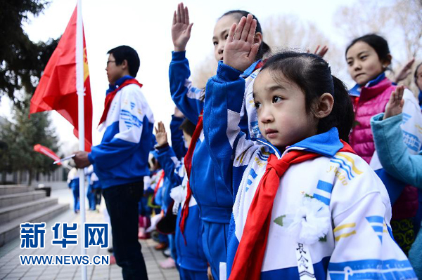 資料圖:4月1日,西寧市玉井巷小學(xué)學(xué)生向中國工農(nóng)紅軍西路軍紀(jì)念碑行禮。在清明節(jié)來臨之際,位于青海省西寧市的中國工農(nóng)紅軍西路軍紀(jì)念館,開展各種形式的革命先烈墓祭掃活動(dòng)和愛國主義教育活動(dòng)。 新華社記者 張宏祥攝