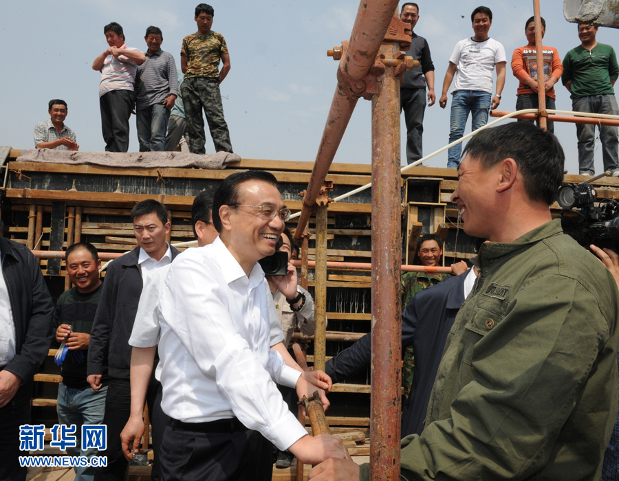 5月22日至23日,中共中央政治局常委、國(guó)務(wù)院總理李克強(qiáng)在內(nèi)蒙古自治區(qū)赤峰市考察調(diào)研。這是5月22日,李克強(qiáng)在德潤(rùn)污水處理廠考察在建污水處理工程時(shí),與農(nóng)民工交談。 新華社記者謝環(huán)馳攝