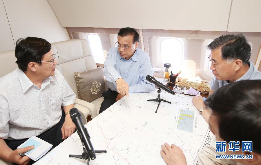 8月3日下午4時(shí)30分,云南省魯?shù)榭h發(fā)生6.5級(jí)地震。黨中央、國(guó)務(wù)院高度重視,中共中央總書記、國(guó)家主席、中央軍委主席習(xí)近平和中共中央政治局常委、國(guó)務(wù)院總理李克強(qiáng)立即作出重要指示和批示。4日一早,李克強(qiáng)代表黨中央、國(guó)務(wù)院,代表習(xí)近平總書記急飛災(zāi)區(qū)察看災(zāi)情,現(xiàn)場(chǎng)指揮抗震救災(zāi)工作。一上飛機(jī),李克強(qiáng)就召開緊急會(huì)議,聽取匯報(bào),詳細(xì)了解災(zāi)情、群眾傷亡和救援進(jìn)展,部署救災(zāi)工作。飛抵地震災(zāi)區(qū)后,李克強(qiáng)即乘車趕往此次地震的震中魯?shù)榭h龍頭山鎮(zhèn),并徒步5公里多來(lái)到受災(zāi)最嚴(yán)重的龍泉村,實(shí)地察看災(zāi)情。隨后,李克強(qiáng)在鎮(zhèn)中學(xué)操場(chǎng)上的帳篷里召開現(xiàn)場(chǎng)會(huì),協(xié)調(diào)解決抗震救災(zāi)中的問(wèn)題。入夜,李克強(qiáng)又忙著到庫(kù)房察看救災(zāi)物資的儲(chǔ)備、配發(fā)等情況,并細(xì)心地叮囑司機(jī)爭(zhēng)分奪秒運(yùn)輸?shù)耐瑫r(shí)要確保安全。次日一大早,他來(lái)到魯?shù)榭h人民醫(yī)院,看望這里收治的地震傷員,慰問(wèn)醫(yī)護(hù)人員。兩天時(shí)間里,地震災(zāi)區(qū)留下了總理忙碌的身影。這是8月4日,李克強(qiáng)在飛機(jī)上召開會(huì)議部署抗震救災(zāi)工作。 新華社記者姚大偉攝