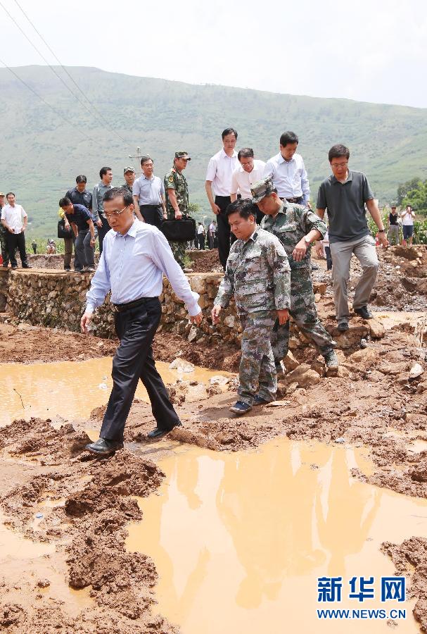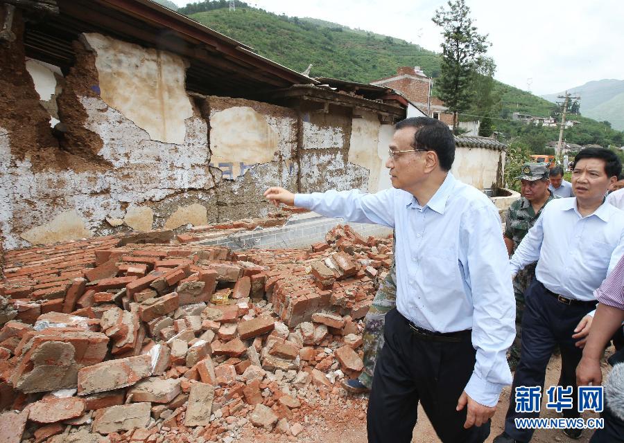 8月3日下午4時(shí)30分,云南省魯?shù)榭h發(fā)生6.5級(jí)地震。黨中央、國(guó)務(wù)院高度重視,中共中央總書記、國(guó)家主席、中央軍委主席習(xí)近平和中共中央政治局常委、國(guó)務(wù)院總理李克強(qiáng)立即作出重要指示和批示。4日一早,李克強(qiáng)代表黨中央、國(guó)務(wù)院,代表習(xí)近平總書記急飛災(zāi)區(qū)察看災(zāi)情,現(xiàn)場(chǎng)指揮抗震救災(zāi)工作。一上飛機(jī),李克強(qiáng)就召開緊急會(huì)議,聽取匯報(bào),詳細(xì)了解災(zāi)情、群眾傷亡和救援進(jìn)展,部署救災(zāi)工作。飛抵地震災(zāi)區(qū)后,李克強(qiáng)即乘車趕往此次地震的震中魯?shù)榭h龍頭山鎮(zhèn),并徒步5公里多來(lái)到受災(zāi)最嚴(yán)重的龍泉村,實(shí)地察看災(zāi)情。隨后,李克強(qiáng)在鎮(zhèn)中學(xué)操場(chǎng)上的帳篷里召開現(xiàn)場(chǎng)會(huì),協(xié)調(diào)解決抗震救災(zāi)中的問(wèn)題。入夜,李克強(qiáng)又忙著到庫(kù)房察看救災(zāi)物資的儲(chǔ)備、配發(fā)等情況,并細(xì)心地叮囑司機(jī)爭(zhēng)分奪秒運(yùn)輸?shù)耐瑫r(shí)要確保安全。次日一大早,他來(lái)到魯?shù)榭h人民醫(yī)院,看望這里收治的地震傷員,慰問(wèn)醫(yī)護(hù)人員。兩天時(shí)間里,地震災(zāi)區(qū)留下了總理忙碌的身影。這是8月4日,李克強(qiáng)徒步前往震中受災(zāi)最嚴(yán)重的龍泉村,實(shí)地察看災(zāi)情。 新華社記者姚大偉攝