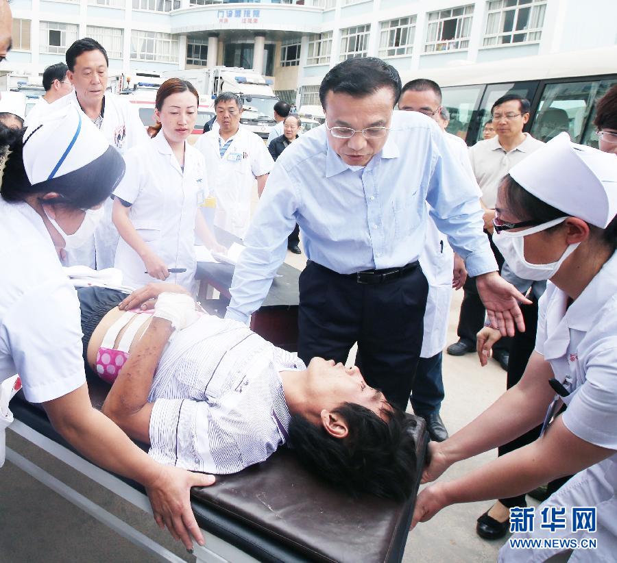 8月3日下午4時(shí)30分,云南省魯?shù)榭h發(fā)生6.5級(jí)地震。黨中央、國(guó)務(wù)院高度重視,中共中央總書記、國(guó)家主席、中央軍委主席習(xí)近平和中共中央政治局常委、國(guó)務(wù)院總理李克強(qiáng)立即作出重要指示和批示。4日一早,李克強(qiáng)代表黨中央、國(guó)務(wù)院,代表習(xí)近平總書記急飛災(zāi)區(qū)察看災(zāi)情,現(xiàn)場(chǎng)指揮抗震救災(zāi)工作。一上飛機(jī),李克強(qiáng)就召開緊急會(huì)議,聽取匯報(bào),詳細(xì)了解災(zāi)情、群眾傷亡和救援進(jìn)展,部署救災(zāi)工作。飛抵地震災(zāi)區(qū)后,李克強(qiáng)即乘車趕往此次地震的震中魯?shù)榭h龍頭山鎮(zhèn),并徒步5公里多來(lái)到受災(zāi)最嚴(yán)重的龍泉村,實(shí)地察看災(zāi)情。隨后,李克強(qiáng)在鎮(zhèn)中學(xué)操場(chǎng)上的帳篷里召開現(xiàn)場(chǎng)會(huì),協(xié)調(diào)解決抗震救災(zāi)中的問(wèn)題。入夜,李克強(qiáng)又忙著到庫(kù)房察看救災(zāi)物資的儲(chǔ)備、配發(fā)等情況,并細(xì)心地叮囑司機(jī)爭(zhēng)分奪秒運(yùn)輸?shù)耐瑫r(shí)要確保安全。次日一大早,他來(lái)到魯?shù)榭h人民醫(yī)院,看望這里收治的地震傷員,慰問(wèn)醫(yī)護(hù)人員。兩天時(shí)間里,地震災(zāi)區(qū)留下了總理忙碌的身影。這是8月5日一大早,李克強(qiáng)在魯?shù)榭h人民醫(yī)院門前廣場(chǎng)安慰救護(hù)車剛送來(lái)的一位傷員。 新華社記者姚大偉攝